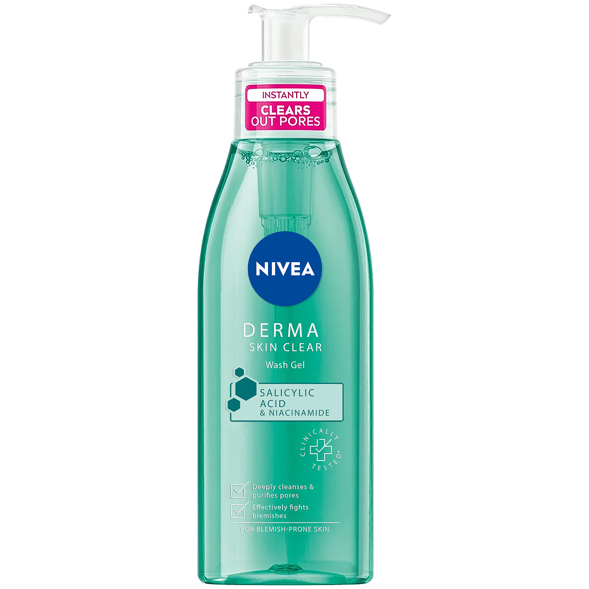 Το Nivea Derma Skin Clear Gel Καθαρισμού καθαρίζει σε βάθος, απελευθερώνει τους πόρους και αφαιρεί την υπερβολική λιπαρότητα. Η σύνθεσή του με σαλικυλικό οξύ και νιασιναμίδη είναι ιδανική για επιδερμίδες με τάση για ακμή και ατέλειες. Το gel μειώνει και αποτρέπει την επανεμφάνιση των πόρων, ενώ διατίθεται σε 98% ανακυκλωμένο μπουκάλι.
