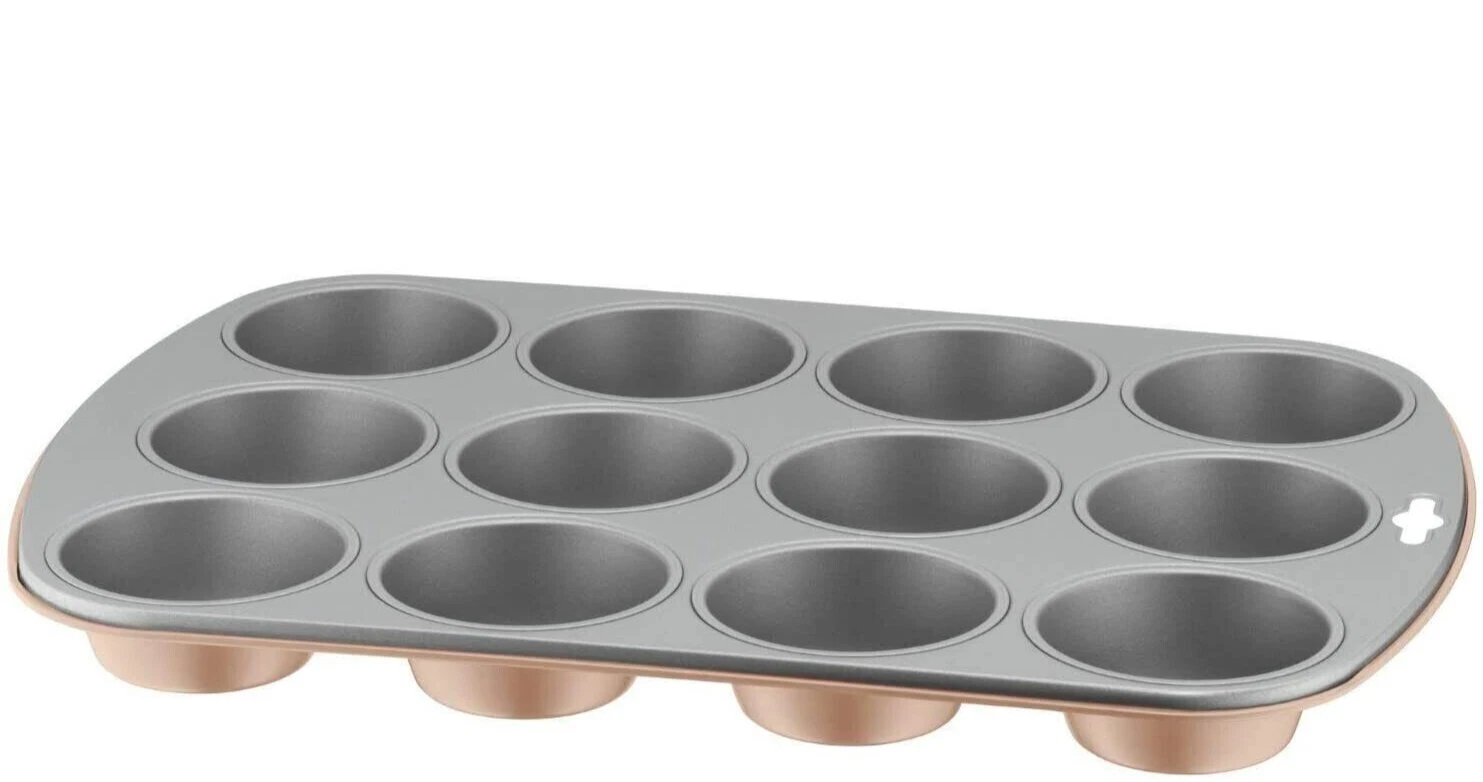 Ανακαλύψτε την ιδανική φόρμα για να δημιουργήσετε λαχταριστά muffin με την φόρμα Kaiser 12 θέσεων από τη σειρά "100 Χρόνια Kaiser". Κατασκευασμένη από αντικολλητικό ατσάλι, αυτή η φόρμα σε χρυσαφί χρώμα εξασφαλίζει εύκολο ξεφορμάρισμα και τέλεια ψημένα muffin κάθε φορά. Οι διαστάσεις της είναι περίπου 26.7 εκατοστά πλάτος, 3.2 εκατοστά ύψος και 38 εκατοστά βάθος, καθιστώντας την πρακτική για κάθε κουζίνα και ιδανική για να ψήσετε 12 muffin ταυτόχρονα.