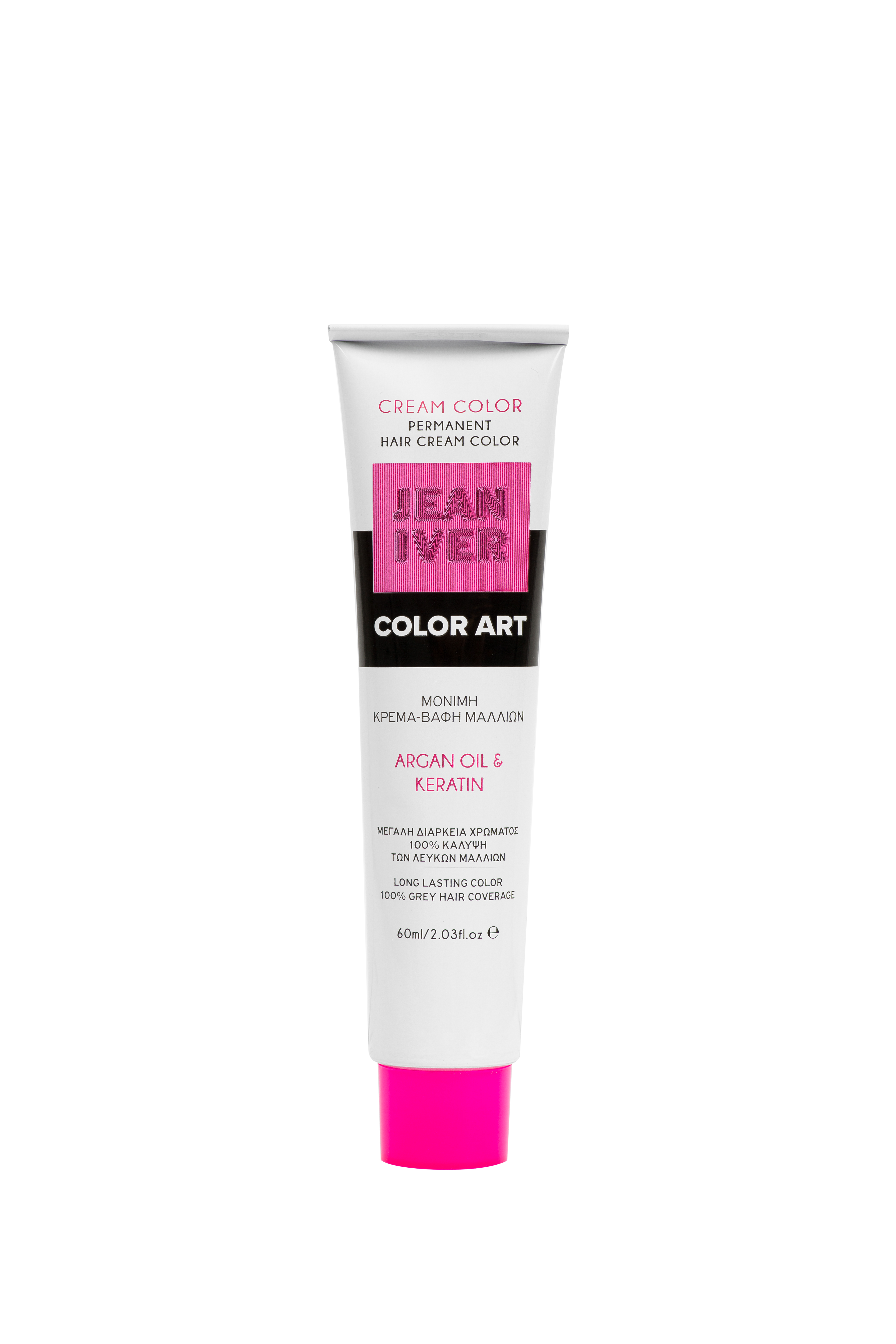 Μόνιμη κρέμα-βαφή μαλλιών για μεγάλη διάρκεια χρώματος και 100% κάλυψη των λευκών. Εμπλουτισμένη με έλαιο Argan και κερατίνη για μαλλιά υγιή και λαμπερά, με ομοιόμορφο χρώμα που διαρκεί. Για καλύτερο αποτέλεσμα συνίσταται να χρησιμοποιείται συνδυαστικά με το JEAN IVER Oxycreme/Οξυζενέ.