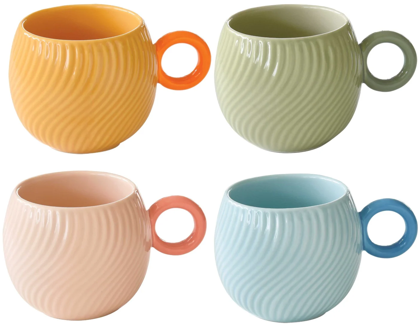 Marva Σετ Φλιτζάνια Καφέ από Πορσελάνη Waves Πολύχρωμα 4τμχ 350ml