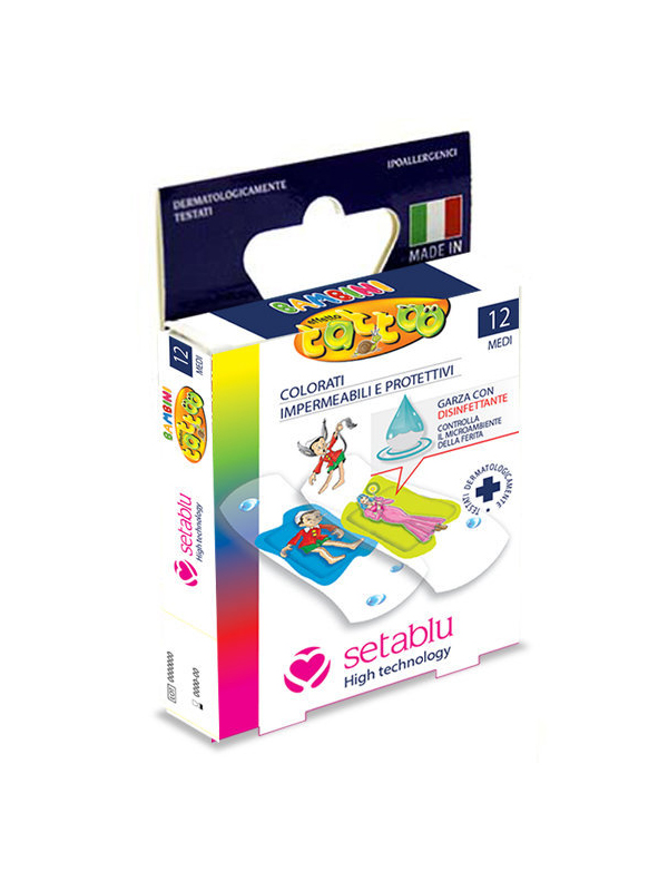 Τα παιδικά επιθέματα tattoo της Setablu συνδυάζουν την αποτελεσματική προστασία με το διασκεδαστικό στυλ. Το σετ περιλαμβάνει 12 μεσαία επιθέματα με ζωηρά σχέδια tattoo, τα οποία είναι αδιάβροχα και υποαλλεργικά. Η μαλακή και απορροφητική γάζα τους δεν κολλάει στο τραύμα, διευκολύνοντας την αλλαγή, ενώ η ισχυρή κόλλα εξασφαλίζει σταθερή εφαρμογή ακόμη και σε δύσκολα σημεία. Είναι ιδανικά για την κάλυψη μικρών γρατζουνιών και κοψιμάτων, κάνοντας τα παιδιά να νιώθουν πιο άνετα με την περιποίηση των τραυμάτων τους.
