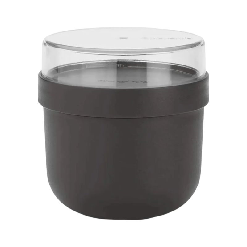 Το στρογγυλό δοχείο φαγητού Make & Take της Brabantia είναι ο ιδανικός σύντροφος για τα γεύματά σας εκτός σπιτιού. Κατασκευασμένο από υψηλής ποιότητας, 100% ανακυκλώσιμο και χωρίς BPA πλαστικό, είναι ανθεκτικό, πλένεται στο πλυντήριο πιάτων και είναι ασφαλές για χρήση στον φούρνο μικροκυμάτων. Ο εργονομικός του σχεδιασμός περιλαμβάνει ένα διαφανές ένθετο καπάκι για να διατηρείτε ξεχωριστά τα δημητριακά, τους ξηρούς καρπούς ή τα φρούτα, ενώ στο κυρίως δοχείο μπορείτε να βάλετε γιαούρτι ή γάλα. Έτσι, μπορείτε να απολαμβάνετε το πρωινό ή το σνακ σας τραγανό ανά πάσα στιγμή. Η συνολική χωρητικότητα είναι 500ml στο κυρίως δοχείο και 130ml στο καπάκι, ενώ οι διαστάσεις του είναι 11cm διάμετρος και 11.1cm ύψος.