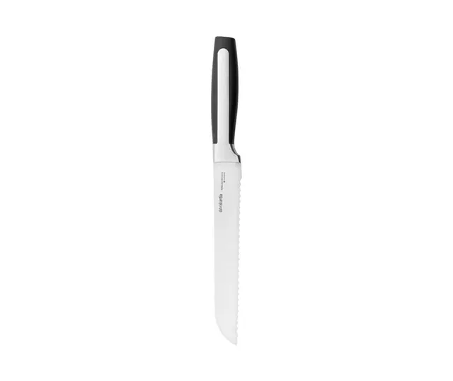Ανακαλύψτε το μαχαίρι ψωμιού Brabantia Profile Line, το ιδανικό εργαλείο για τους λάτρεις του ψωμιού, σχεδιασμένο για να κόβει ψωμί και άλλα προϊόντα με σκληρή κρούστα και μαλακό εσωτερικό, κάνοντας την κοπή παιχνιδάκι. Είναι πρακτικό, καθώς κόβει εύκολα ακόμα και την πιο σκληρή κρούστα χωρίς να συνθλίβει τις φέτες σας, και προσφέρει καλό κράτημα χάρη στον εργονομικό του σχεδιασμό. Η μακριά λεπίδα είναι κατασκευασμένη από υψηλής ποιότητας ατσάλι με οδοντωτή κόψη, που παραμένει αιχμηρή για μεγαλύτερο διάστημα, ενώ είναι εύκολο στον καθαρισμό και ανθεκτικό χάρη στην κοφτερή του σχεδίαση. Με διαστάσεις ύψος 2.2 εκ., μήκος 34.5 εκ. και πλάτος 3.2 εκ., συνδυάζει λειτουργικότητα και αντοχή για καθημερινή χρήση.