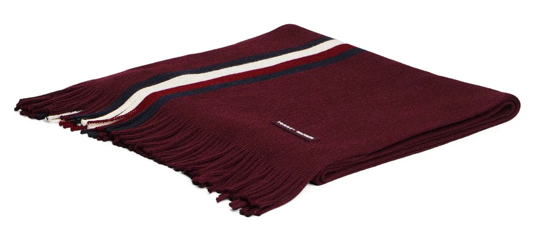 Tommy Hilfiger Ανδρικό Μακρύ Κασκόλ Rachelle RWB Signature Ρίγα Μπορντό