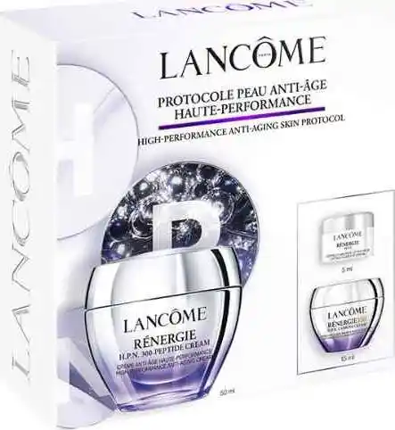 Η Lancome παρουσιάζει μια επαναστατική προσέγγιση στη σύσφιξη με το σετ Renergie HPN 300-Peptide Cream το οποίο αξιοποιεί τη δύναμη περισσότερων από 300 τύπων πεπτιδίων. Η κεντρική κρέμα Renergie HPN 50ml βοηθά στην ανάπλαση του δέρματος ταχύτερα από ποτέ στοχεύοντας στη χαλάρωση και την απώλεια όγκου με εντυπωσιακά αποτελέσματα. Μαζί με αυτήν η Day Cream SPF50 15ml προσφέρει την απαραίτητη καθημερινή προστασία από τις υπεριώδεις ακτίνες διατηρώντας το δέρμα προστατευμένο και ενυδατωμένο καθ' όλη τη διάρκεια της ημέρας. Η Eye Cream 5ml περιποιείται την περιοχή των ματιών προσφέροντας ένα εφέ lifting και μειώνοντας το πρήξιμο κάτω από τα μάτια για μια πιο νεανική εμφάνιση. Αυτό το σετ αντιπροσωπεύει την κορυφή της τεχνολογίας περιποίησης της Lancome προσφέροντας μια ολοκληρωμένη λύση για τη γυναίκα που δεν συμβιβάζεται με τίποτα λιγότερο από την απόλυτη ανανέωση της επιδερμίδας της.