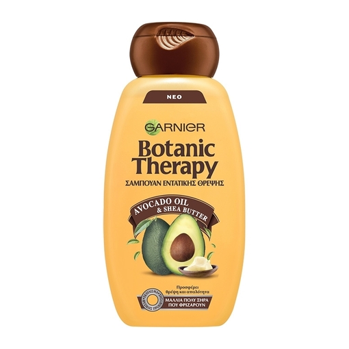Το Garnier Botanic Therapy συνδυάζει: Έλαιο Αβοκάντο, γνωστό για τις ιδιότητες απαλότητας που προσφέρει και Βούτυρο Καριτέ, φημισμένο για τη δύναμη βαθιάς θρέψης. Η κρεμώδης και πλούσια υφή του δε βαραίνει τα μαλλιά και το πλούσιο άρωμά του αφήνει τα μαλλιά ανάλαφρα. Αποτέλεσμα: Τα μαλλιά θρέφονται εντατικά, αποκτώντας ξανά ελαστικότητα και απαλότητα. Γίνονται πιο λαμπερά και ευκολοχτένιστα με υγιή όψη. To βούτυρο Καριτέ προέρχεται από συνεταιρισμούς στην Νότια Αφρική. Είναι προιόν δίκαιου εμπορίου με σκοπό να συμβάλλει και να προστατέψει την οικονομική ανάπτυξη των τοπικών κοινωνιών καθώς και τα δέντρα απο τα οποία προέρχεται το βούτυρο Καριτέ. Πως να το χρησιμοποιήσετε : Εφαρμόστε σε βρεγμένα μαλλιά, κάντε απαλό μασάζ προσεκτικά σε όλο το τριχωτό της κεφαλής και ξεβγάλτε. Σε περίπτωση επαφής με τα μάτια, ξεπλύντε άμεσα και προσεκτικά.