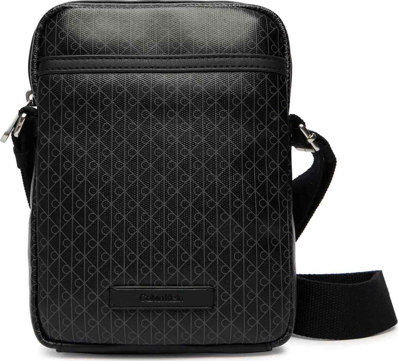 Calvin Klein Ανδρική Μικρή Τσάντα Χιαστί Emblem Aop Coated Slim Reporter Μαύρο