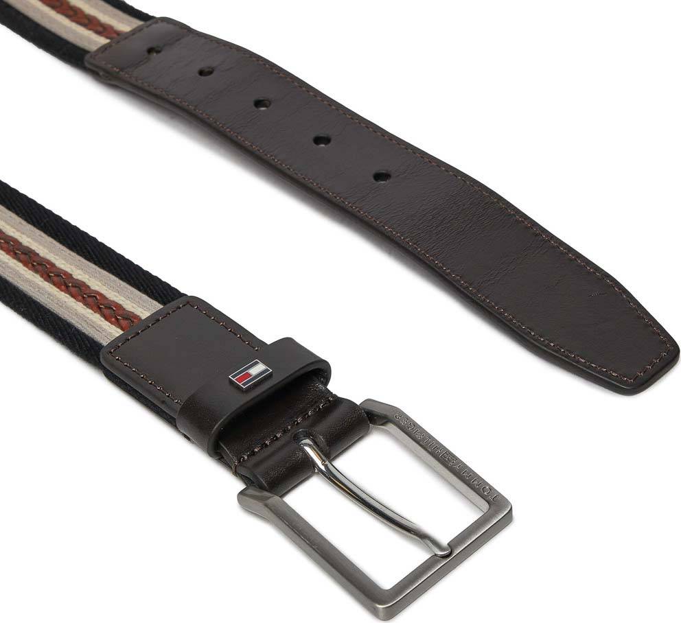 Αναβαθμίστε το στυλ σας με την ανδρική ζώνη Tommy Hilfiger, ένα αξεσουάρ που συνδυάζει κομψότητα και πρακτικότητα, ιδανικό για να ολοκληρώσει κάθε σας εμφάνιση. Αυτό το μεσαίο μοντέλο κατασκευάζεται από έναν ποιοτικό συνδυασμό υφασμάτων (40% Βισκόζη, 30% Πολυεστέρας, 20% Βαμβάκι) και φυσικού δέρματος (10%), προσφέροντας ανθεκτικότητα και μια ευχάριστη υφή. Διαθέτει κλείσιμο με κλασική πόρπη με καρφίτσα, εξασφαλίζοντας μια ασφαλή και ρυθμιζόμενη εφαρμογή. Η ζώνη έχει πλάτος 3,5 cm και διαθέτει 5 οπές για ρύθμιση, με το μήκος από την αρχή της πόρπης έως την τελευταία τρύπα να είναι 104 cm και από το τακούνι της πόρπης έως την πρώτη τρύπα να είναι 89 cm.