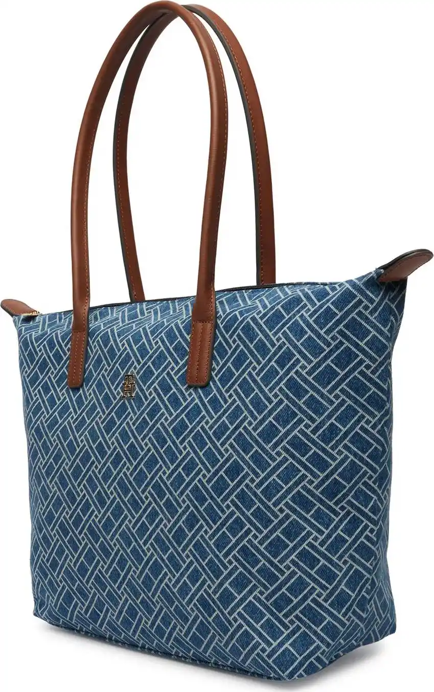 Tommy Hilfiger Γυναικεία Μεγάλη Τσάντα Tote Popette Denim Flag Μπλε