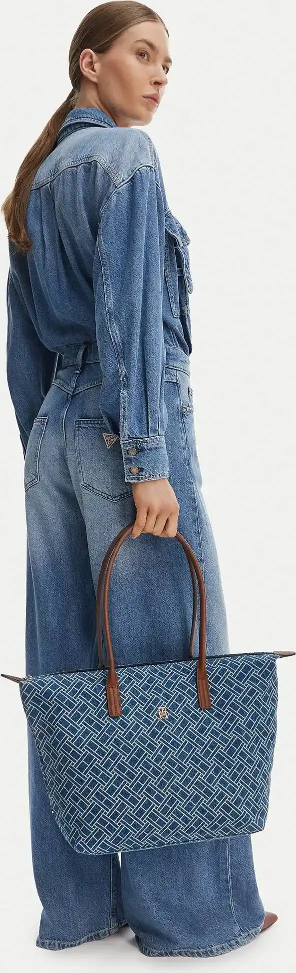 Αυτή η εντυπωσιακή γυναικεία τσάντα Tommy Hilfiger από τη σειρά Popette Tote Denim Flag σε μπλε χρώμα αποτελεί την ιδανική επιλογή για τις καθημερινές σας δραστηριότητες, συνδυάζοντας το casual στυλ με την πολυτέλεια. Κατασκευασμένη από υψηλής ποιότητας σκληρό υφαντό υλικό, διαθέτει μεγάλο μέγεθος με διαστάσεις 51 x 32 x 14 cm, προσφέροντας άνετο εσωτερικό χώρο που χωράει έγγραφα μεγέθους A4. Ο σχεδιασμός της ολοκληρώνεται με ασφαλές κλείσιμο με φερμουάρ, εξασφαλίζοντας πρακτικότητα και κομψότητα σε κάθε σας εμφάνιση.
