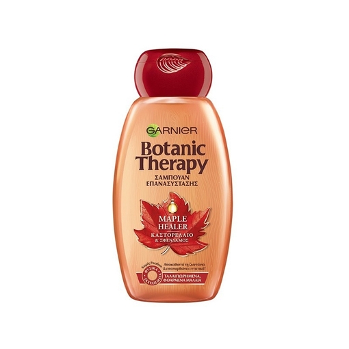 Σαμπουπάν επανσύστασης μαλλιών maple healer. Στη νέα της αυθεντική συνταγή για επανασύσταση των ταλαιπωρημένων, φθαρμένων μαλλιών, η νέα σειρά της Garnier επιλέγει και συνδυάζει: Καστορέλαιο, πλούσιο σε λιπαρά οξέα, που χρησιμοποιείται από την αρχαιότητα για τις προστατευτικές και ενδυναμωτικές του ιδιότητες.