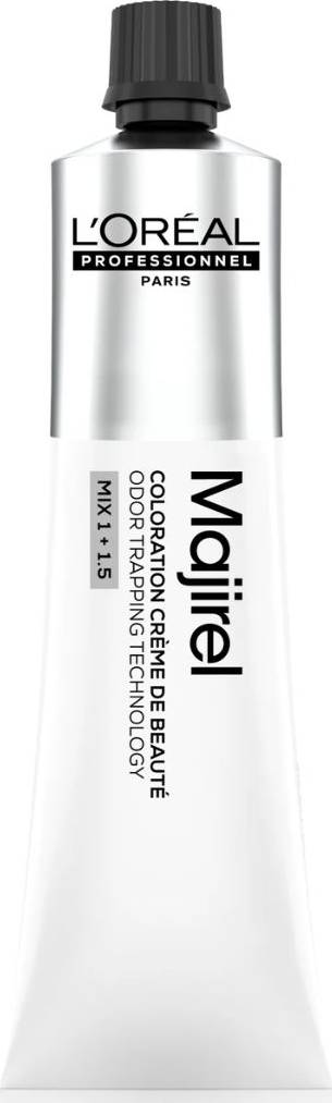 Η Majirel της L'Oréal Professionnel αποτελεί την εμβληματική μόνιμη επαγγελματική βαφή μαλλιών που προσφέρει ένα πλούσιο, βαθύ και ομοιόμορφο χρωματικό αποτέλεσμα με μεγάλη διάρκεια. Η προηγμένη της σύνθεση περιέχει την καινοτόμο τεχνολογία Ionène G και το σύμπλεγμα INCELL, δύο συμπληρωματικά ενεργά συστατικά που δρουν για την εντατική προστασία και αναδόμηση της τρίχας τόσο στον πυρήνα (φλοιό) όσο και στην επιφάνειά της (επιδερμίδα), ενισχύοντας την εσωτερική δομή και βελτιώνοντας την υφή των μαλλιών. Αυτή η κρέμα ομορφιάς (Créme de Beaute) εξασφαλίζει έως και τρεις φορές πιο απαλά μαλλιά μετά τη χρήση σε σύγκριση με προηγούμενες συνθέσεις, ενώ παράλληλα διαθέτει μια ευχάριστη, ελαφριά, και λουλουδάτη μυρωδιά χάρη στην τεχνολογία Odour Trapping Technology, η οποία μειώνει τη δυσάρεστη οσμή της αμμωνίας. Προσφέρει αξιόπιστη κάλυψη έως και 100% των λευκών μαλλιών και μπορεί να ανοίξει το φυσικό χρώμα έως και τρεις τόνους, ανάλογα με τον οξειδωτικό που θα επιλεγεί. Το τελικό αποτέλεσμα είναι ένα ακριβές και προβλέψιμο χρώμα, γεμάτο λάμψη και ζωντάνια από τη ρίζα έως τις άκρες.