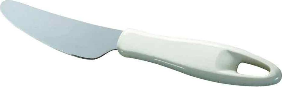 Το μαχαίρι βουτύρου της σειράς Presto από την Tescoma είναι ένα πρακτικό και κομψό εργαλείο, ειδικά σχεδιασμένο για την εύκολη επάλειψη βουτύρου, μαρμελάδας ή μαλακών τυριών στο ψωμί. Διαθέτει μια στρογγυλεμένη λεπίδα από ανοξείδωτο ατσάλι υψηλής ποιότητας που γλιστράει ομαλά πάνω στις επιφάνειες, ενώ η εργονομική του λαβή σε λευκό χρώμα προσφέρει άνεση και στυλ στο καθημερινό σας πρωινό. Με συνολικό μήκος 20cm, είναι ιδανικό για χρήση απευθείας από το δοχείο του βουτύρου, εξασφαλίζοντας ακρίβεια στις κινήσεις και καθαριότητα στο σερβίρισμα. Το υλικό κατασκευής του είναι πλήρως ανθεκτικό στη σκουριά και κατάλληλο για καθημερινή χρήση, ενώ πλένεται με απόλυτη ασφάλεια στο πλυντήριο πιάτων χωρίς να χάνει τη φόρμα ή το χρώμα του. Η σειρά Presto της Tescoma φημίζεται για το συνδυασμό λειτουργικότητας και προσιτής τιμής, προσφέροντας ένα εργαλείο που θα γίνει αναπόσπαστο κομμάτι του εξοπλισμού της τραπεζαρίας σας, συνδυάζοντας την καθαρή silver εμφάνιση της λεπίδας με τη λευκή πινελιά της λαβής.