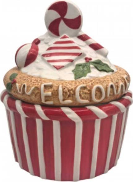 Πρόκειται για μια κεραμική μπισκοτιέρα/βάζο με καπάκι, με διαστάσεις περίπου 18×18×22 εκ., σχεδιασμένη με παιχνιδιάρικο και εορταστικό στιλ, που παραπέμπει σε γλυκά και γιορτινή διάθεση. Κατασκευασμένη από ανθεκτικό κεραμικό, προσφέρει μια όμορφη και πρακτική λύση για αποθήκευση μπισκότων, γλυκισμάτων ή άλλων μικροαντικειμένων στην κουζίνα ή στο τραπέζι, ενώ το καπάκι βοηθά στη διατήρηση της φρεσκάδας και στην προστασία από σκόνη. Ο διακοσμητικός χαρακτήρας της μπισκοτιέρας την καθιστά ιδανική όχι μόνο για καθημερινή χρήση αλλά και ως δώρο, δίνοντας χρώμα και γιορτινή διάθεση στο χώρο. Το χειροποίητο πλύσιμο στο χέρι διασφαλίζει ότι η στιλπνότητα και η ποιότητα του κεραμικού διατηρούνται.