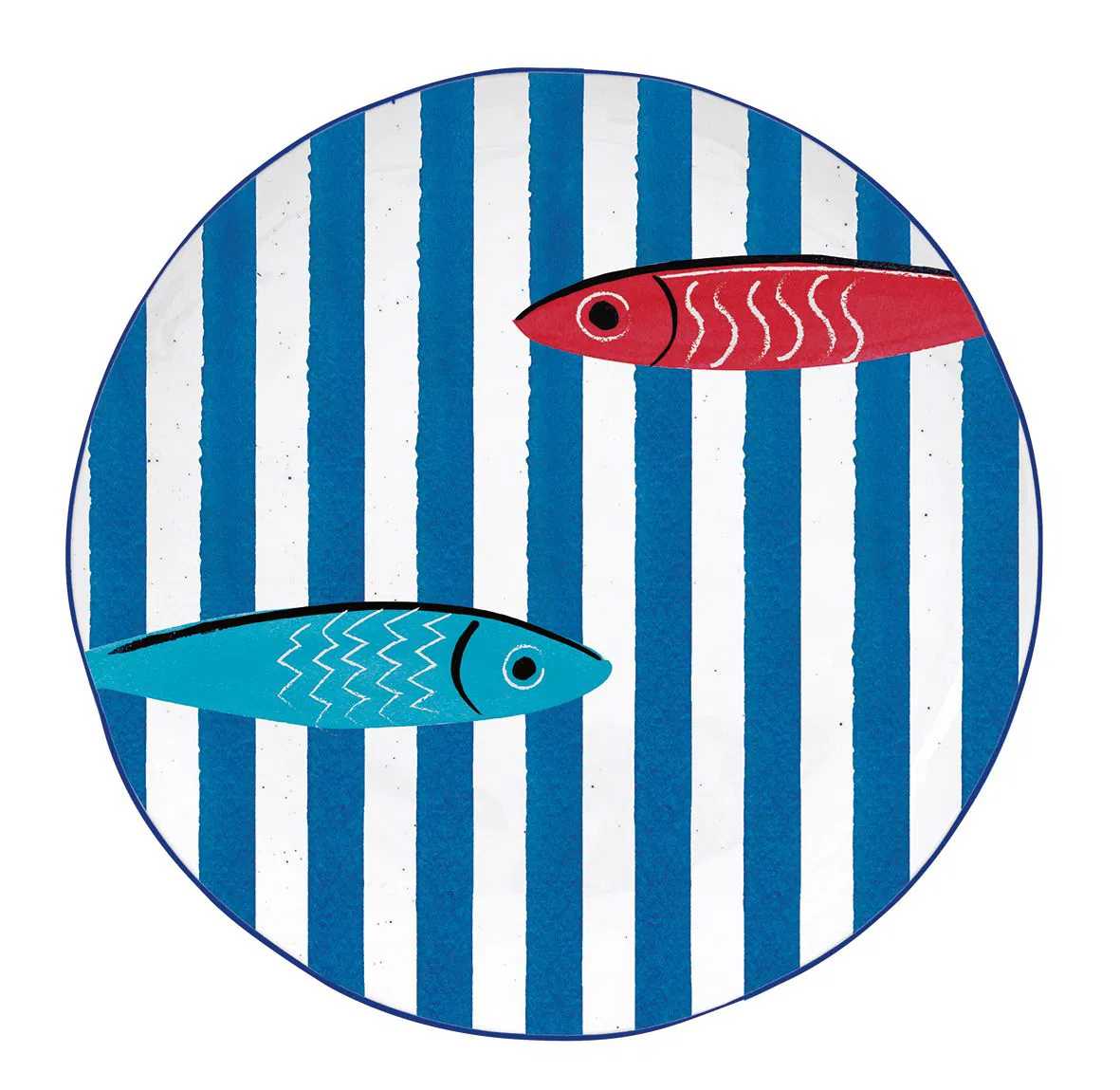 Easy Life Sardine's Party Fische Πιάτο Φαγητού Πορσελάνης Δ. 26cm - Λευκό Μπλε