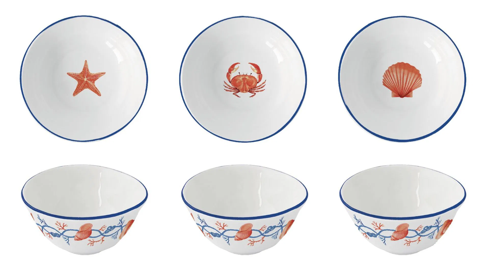 Το Easy Life Cote De Mer Σετ 3 Μπολ για Ντιπ είναι ιδανικό για να προσθέσετε μια θαλασσινή ατμόσφαιρα στο τραπέζι σας. Κατασκευασμένα από πορσελάνη, τα μπολ έχουν διάμετρο 10cm και ύψος 4,5cm. Κάθε μπολ διαθέτει μπλε περίγραμμα και είναι διακοσμημένο με θέματα της θάλασσας, όπως καβούρια, ιππόκαμπους, κοχύλια, κοράλλια και σχοινιά πλοίου με κόμπους, σε λευκό, μπλε και κόκκινο χρώμα.