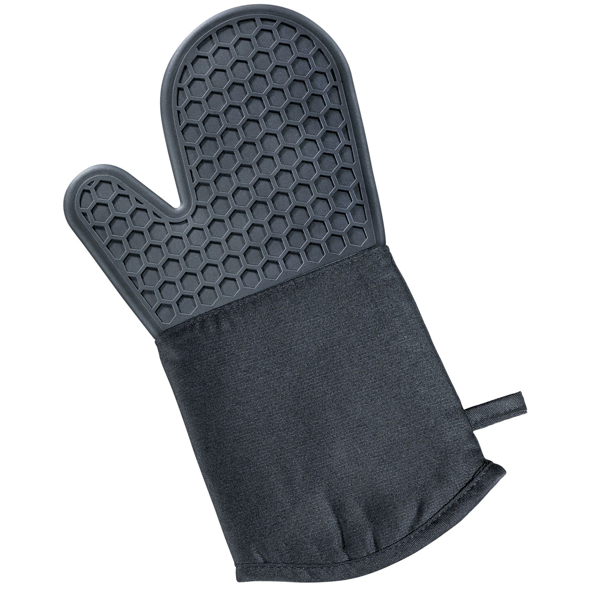 Το θερμομονωτικό γάντι σιλικόνης της Küchenprofi σε μαύρο χρώμα προσφέρει προστασία από υψηλές θερμοκρασίες έως 250°C. Διαθέτει εργονομικό σχεδιασμό και είναι ιδανικό για χρήση σε φούρνους, ψησταριές και άλλες θερμές επιφάνειες.