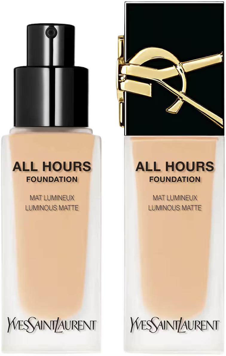 Το All Hours Glow Foundation είναι το foundation του οίκου Yves Saint Laurent, τώρα με λαμπερό φινίρισμα, σχεδιασμένο για να προσφέρει τέλεια επιδερμίδα όλη την ημέρα και όλη τη νύχτα. Η αναβαθμισμένη, αεροπρόσληψη σύνθεση του παρέχει 24ωρη πλήρη κάλυψη με φυσικό, δροσερό ματ αποτέλεσμα που παραμένει άψογο και φρέσκο. Με την πρωτοποριακή Skin-Fusing™ τεχνολογία, το foundation μιμείται τη σύσταση της επιδερμίδας για τέλεια σύντηξη, εξασφαλίζοντας αντοχή στο νερό, τη μεταφορά και την έντονη δραστηριότητα. Η φόρμουλα είναι εμπλουτισμένη με Υαλουρονικό οξύ, Νιασιναμίδη και λάδι μακαντάμια, προσφέροντας έντονη ενυδάτωση, άνεση και περιποίηση, με αποτέλεσμα η επιδερμίδα να είναι πιο απαλή, λεία και ενυδατωμένη μετά από μόλις δύο εβδομάδες. Η ελαφριά υφή ορού επιτρέπει την εύκολη εφαρμογή σε στρώσεις, χωρίς να βαραίνει, ενώ το εκχύλισμα πετάλων γιασεμιού λειτουργεί ως μέρος της θρεπτικής συνταγής, συμβάλλοντας στην ενοποίηση και τη λάμψη του τόνου της επιδερμίδας.