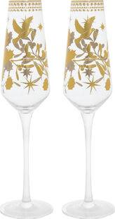 Maxwell & Williams White Christmas Prosecco Glasses 240ml Glass Set of 2 - Gold