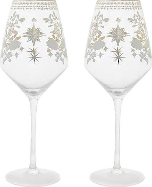 Maxwell & Williams White Christmas Wine Glasses 500ml Set of 2 - Silver