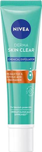 Η Nivea Derma Skin Clear Κρέμα Προσώπου Κατά Των Ατελειών 40ml είναι μια εξειδικευμένη φροντίδα ημέρας που αποτελεί μέρος της σειράς Derma Skin Clear, σχεδιασμένη για να καταπολεμά αποτελεσματικά τις ατέλειες, τα σπυράκια και τα μαύρα στίγματα, ενώ παράλληλα ενυδατώνει και μαλακώνει την επιδερμίδα. Η φόρμουλά της περιέχει ένα ισχυρό συνδυασμό δραστικών συστατικών, όπως το σαλικυλικό οξύ και το νιασιναμίδιο, τα οποία συμβάλλουν στην απολέπιση των νεκρών κυττάρων, τον καθαρισμό των πόρων και τη μείωση της υπερβολικής λιπαρότητας. Το σαλικυλικό οξύ δρα αντιβακτηριακά και κερατολυτικά, ενώ η νιασιναμίδη βοηθά στη βελτίωση της υφής του δέρματος και στη μείωση των κοκκινίλων. Η κρέμα προσφέρει ενυδάτωση χωρίς να φράσσει τους πόρους, ενώ η ελαφριά υφή της απορροφάται γρήγορα. Είναι δερματολογικά ελεγμένη και μη φαγεσωρογόνος, καθιστώντας την ιδανική για λιπαρές και με τάση ακμής επιδερμίδες.