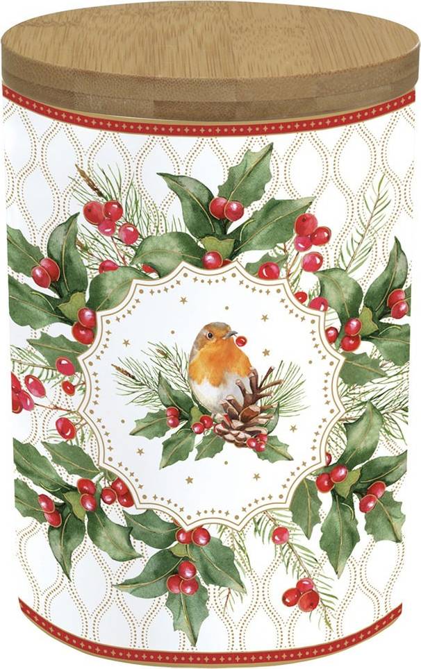 Easy Life Christmas Berries Jar With Bamboo Lid Porcelain Storage Jar 1500ml